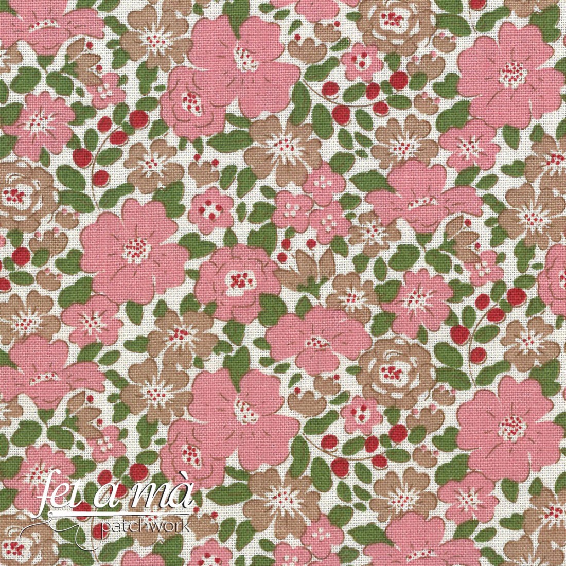 Tilda fabric fat quarter with print of flowers on a off white background.